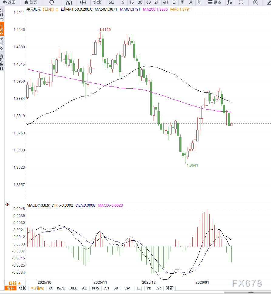 美元兑加元近期走势主要受油价波动与美元风险情绪双重影响。油价回升强化了加元支撑,但美元仍受地缘政治与贸易不确定性拖累。